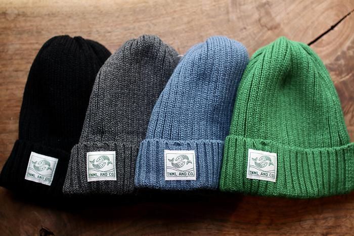 デザインは、リブ編みに TNML AND CO. のネームタグを配したモデルと、ケーブル編みに music for every FiSHERMAN のネームタグをあしらったモデルの2タイプをご用意。